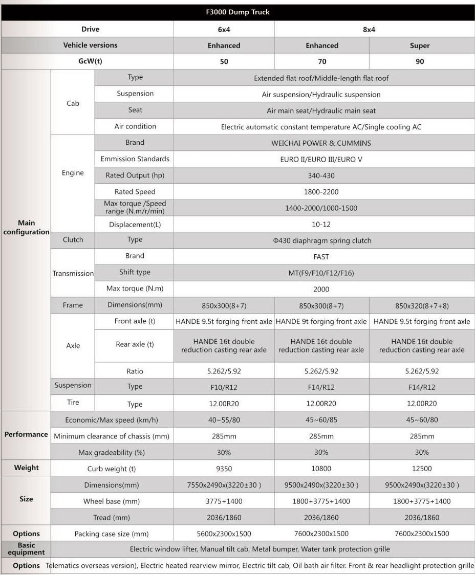 Shacman F3000 6x4 8x4 Truck Dump có dung tích cao: Trục tiên tiến áp dụng công nghệ trục giảm tốc độ hai giai đoạn và công nghệ trục xe ngoài đường hạng nặng, và đã trải qua hơn 1,3 triệu lần kiểm tra khả năng tải mạnh mà không bị hỏng.
